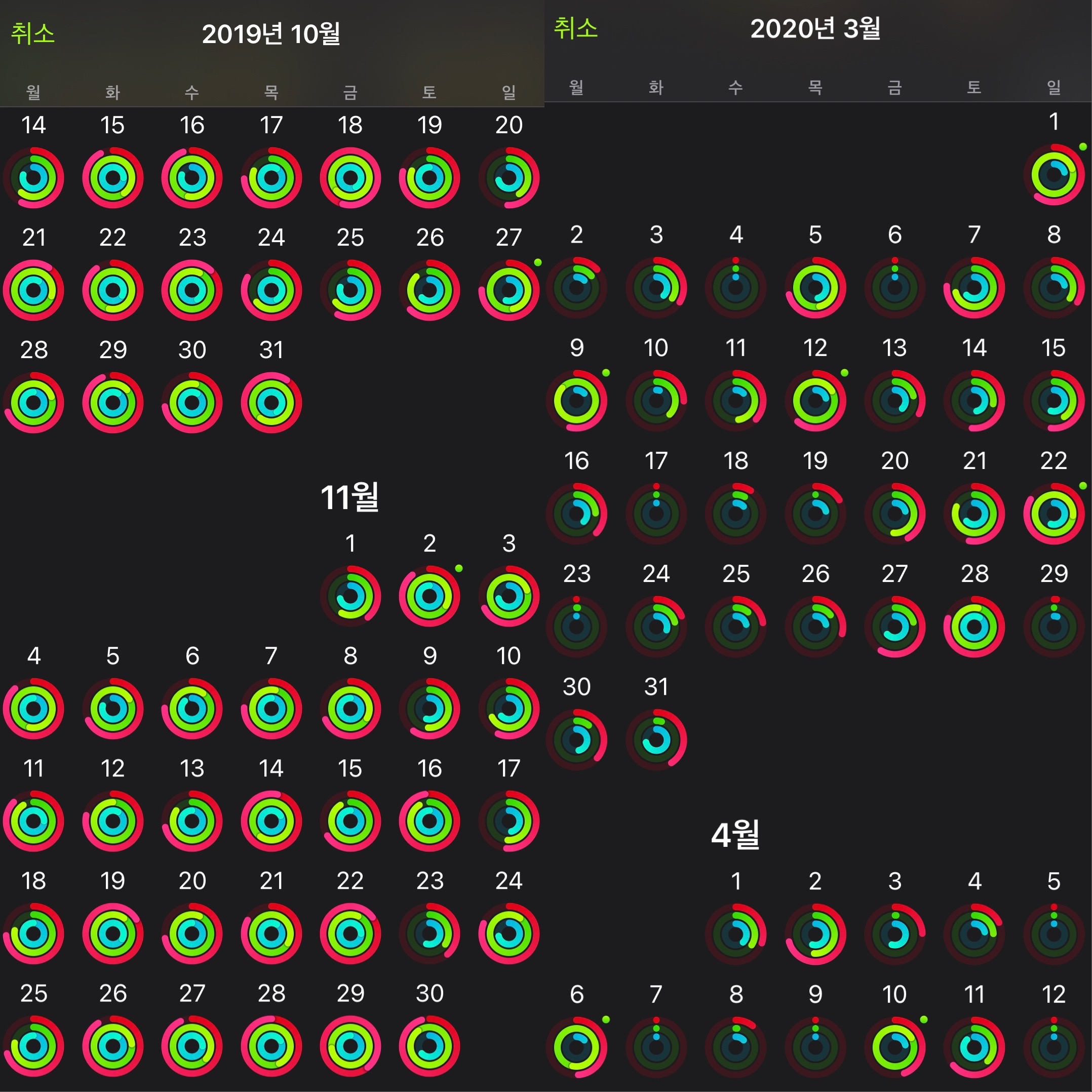 개인적으로 애플워치를 사용하고 있는데, 코로나 전인 2019년 가을과 코로나 이후인 2020년 봄의 활동링을 비교해보니 그 차이를 확연하게 느낄 수 있었다. (너무나 정적인 2020년이었다 ㅠㅠ) 덕분에 작년에 비해 다소 무거워진 몸이지만, 홈트라도 해야겠다 싶어 구매한 싸이클도 틈틈이 타고, 요가원에 직접 가는 대신 매주 줌을 통해 진행되는 허니쌤의 요가 수업도 놓치지 말아야지! 운동도 배움도 게을러지지 않는 2021년을 보내야겠다 :)